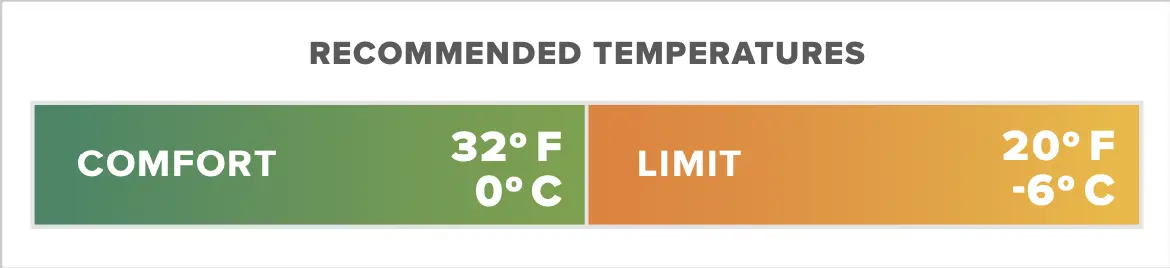- Temperaturbereich: Komfort 0°C, Limit -6°C
