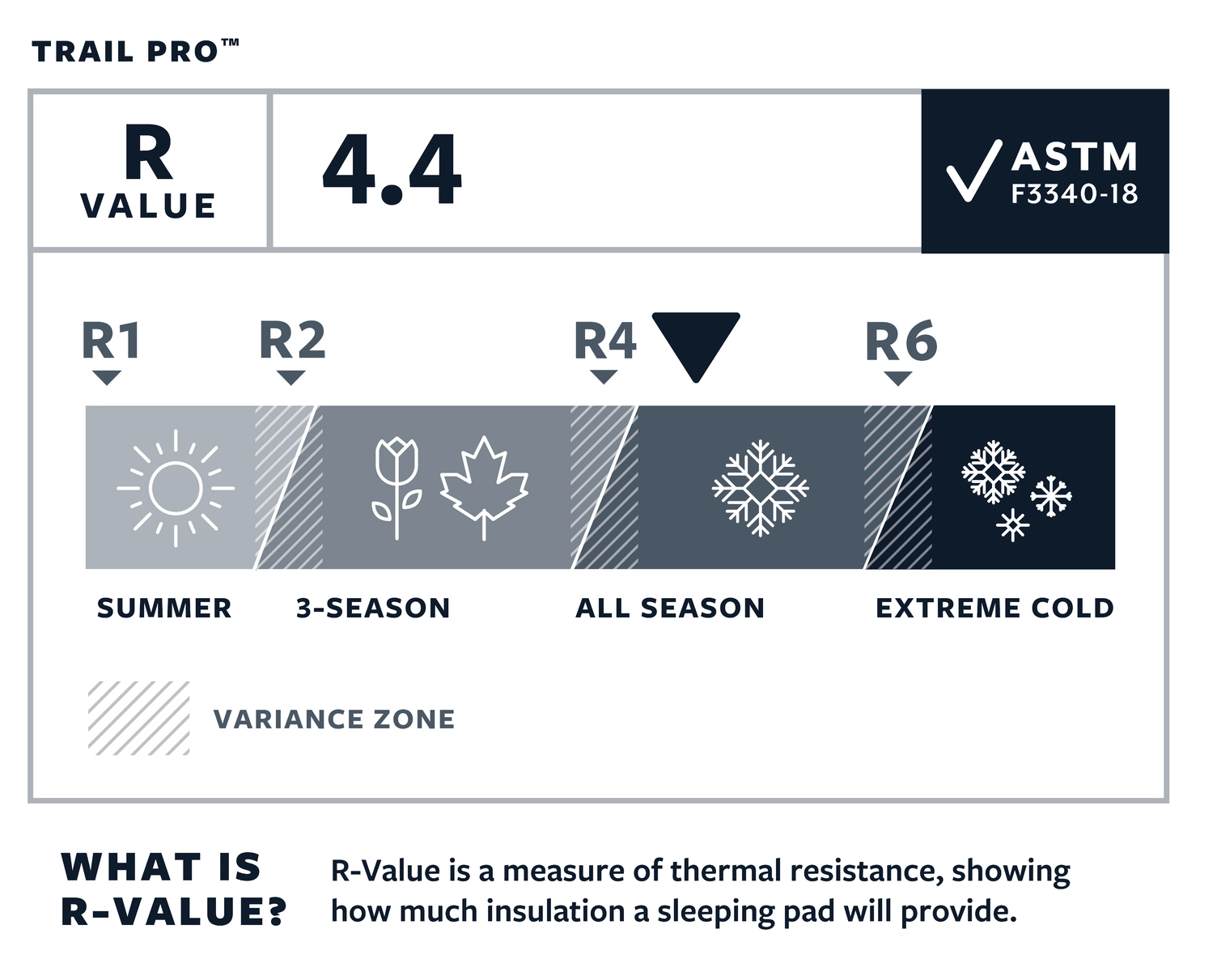 Die Trail Pro mit Ihrer für vier Jahreszeiten geeigneten Wärmeleistung und legendären Stützkraft bietet unübertroffenen Komfort bei allen Unternehmungen. Der selbstaufblasende Schaumstoff ist 7,6 cm hoch und hat eine StrataCore-Konstruktion mit dem besten Wärme-Gewichts-Verhältnis aller selbstaufblasenden Schaumstoffmatten. Der R-Wert von 4,4 ermöglicht ein ganzjähriges, ungetrübtes Outdoor-Erlebnis. Die vielseitige, selbstaufblasende Matte hat ein hochwertiges WingLock-Ventil, mit dem die Matte dank der grösseren Öffnung und Aufblasen in nur eine Richtung drei Mal schneller aufgeblasen werden kann. Wie alle Matten von Therm-a-Rest wird die Trail Pro aus Qualitäts- und Umweltschutzgründen im Inland hergestellt. Zum Lieferumfang gehört ein kompakter Packsack.