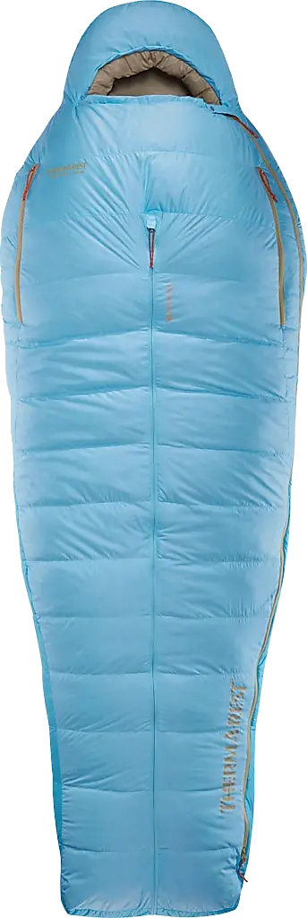 Komfort hat keine Einheitsgröße, weshalb die Form des Boost 650 individuell angepasst werden kann, um die perfekte Balance zwischen Bewegungsfreiheit und Wärme zu finden. Als geräumiger, halb-rechteckiger Schlafsack bietet der Boost den nötigen Platz zum Seitenschlafen, Umdrehen, Ausbreiten und Entspannen. Die halb-rechteckige Form bietet wesentlich mehr Platz im Inneren als ein Mumienschlafsack – du fühlst dich frei und kannst die ganze Nacht über in jeder gewünschten Position schlafen. Aber mehr Platz erfordert mehr Körperwärme, um den Körper warm zu halten. Hier setzt der WarmZip an. Durch den hochgezogenen Reißverschluss verwandelt sich die Form des Boost 650 von einem halb-rechteckigen Schlafsack in einen wärmeeffizienten Mumienschlafsack. Dabei werden die Daunen um den Körper herum verteilt und der Raum, den der Körper zum Wärmen benötigt, verkleinert. Mit dem WarmZip kann die Wärmeleistung des Boost um bis zu 6 °C erhöht werden. Standardmerkmale von Therm-a-Rest wie ein bauschig